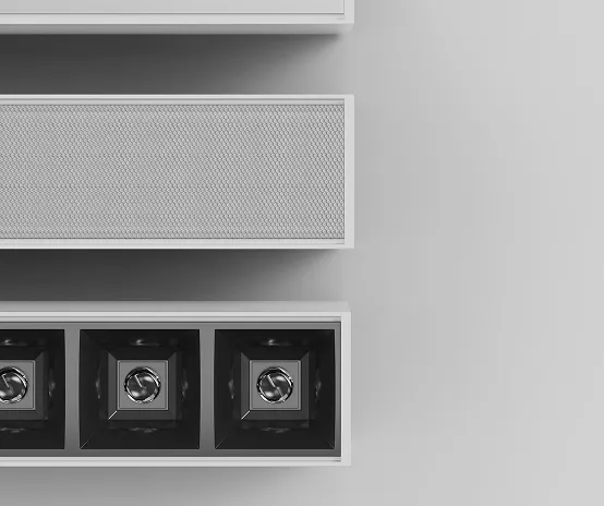Smooth gradation of luminance from light source to ceiling, which reduces glare and unifies the fixture and ceiling.