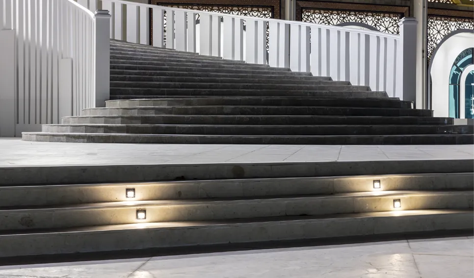 Tại những khu vực dành riêng cho nghi lễ thanh tẩy, ánh sáng hỗ trợ độ rõ nét về mặt thị giác và vệ sinh mà không gây xao nhãng. Các đèn âm sàn Panasonic mang lại ánh sáng dịu nhẹ, hướng chiếu sáng tốt, đảm bảo nhìn rõ và cảm giác thoải mái khi thực hiện lễ wudu (rửa tội), và cho phép không gian vừa duy trì chức năng vừa giữ được nét yên tĩnh, tôn kính.