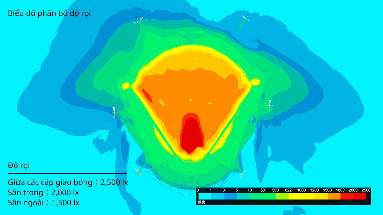 Mô phỏng độ chính xác cao đảm bảo độ rọi đáp ứng các thông số kỹ thuật của Bóng chày chuyên nghiệp Nhật Bản