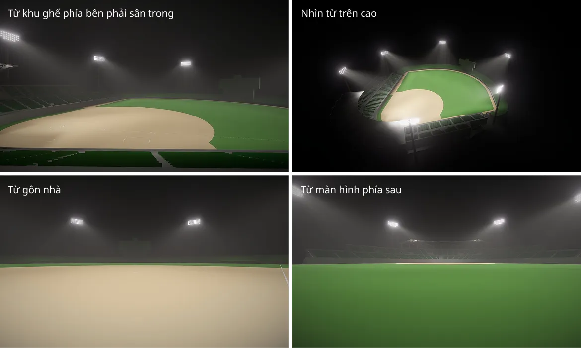 Biến sân vận động bóng chày thành một không gian ấn tượng, đồng thời cân nhắc ánh sáng chiếu vào các cầu thủ và ánh sáng lọt ra bên ngoài