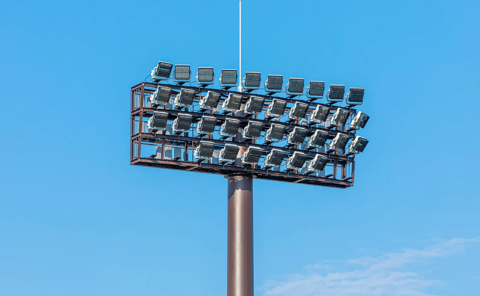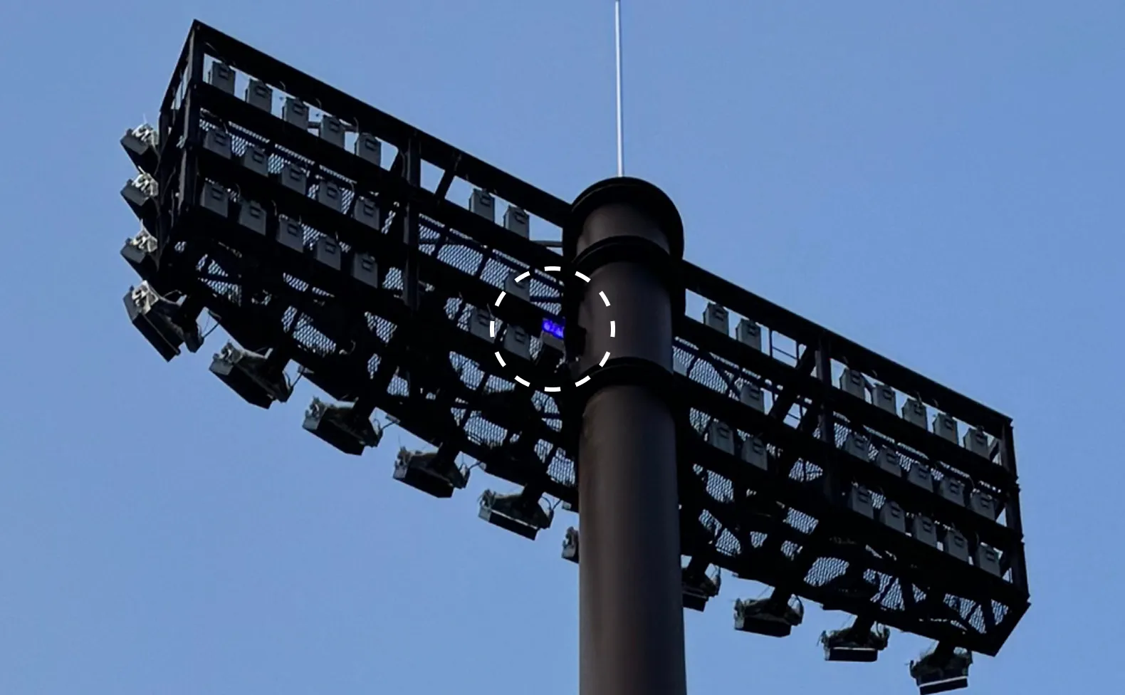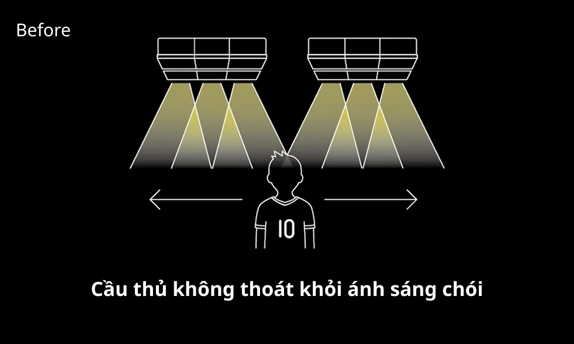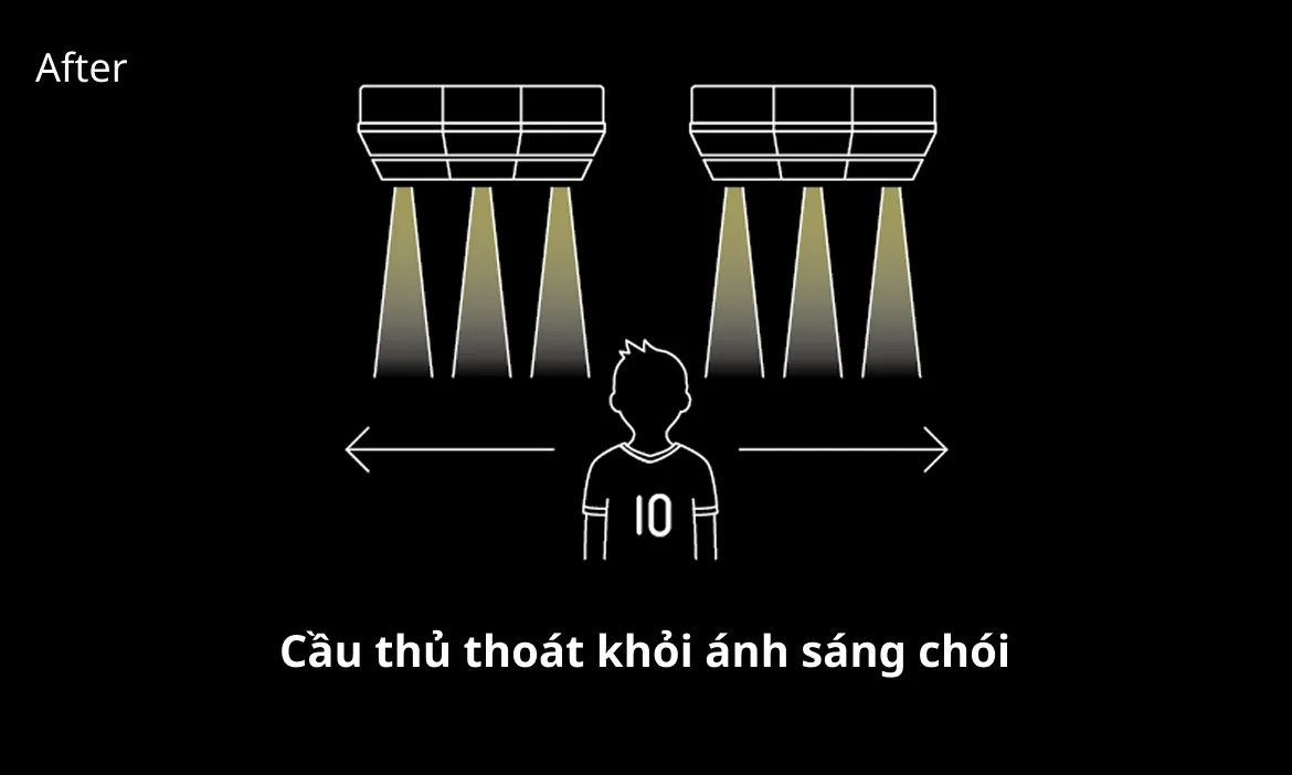Sân vận động được trang bị đèn pha tiên tiến của Panasonic, thể hiện công nghệ độc quyền mang lại hiệu suất tối ưu ngay cả trong các trận đấu ban đêm.