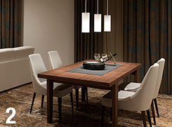 Tokoh utama perjamuan adalah makanan. Bila dengan warna cahaya makanan dapat terlihat lebih enak, ruang di sekitar meja makan pun akan terhias.